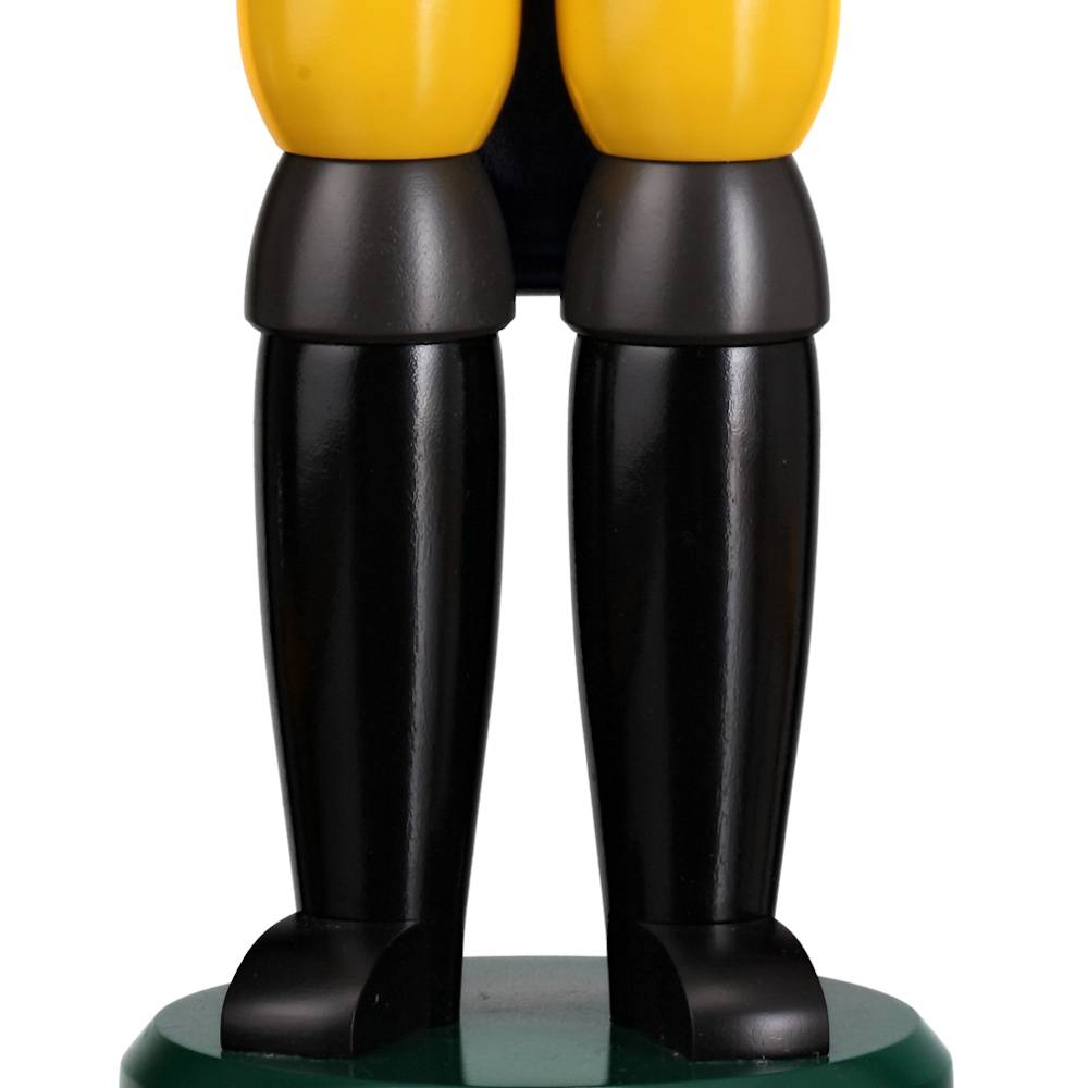 Sehr farbenfroh ist dieser große König gestaltet. Seine Stiefel sind schwarz-braun und der Korpus der Krone schwarz lackiert. Die blaue Uniformjacke ist an den Schultern gelb abgesetzt. Ärmel und vorderer Schlitz wurden rot lackiert. Die Jacke trägt rote Knöpfe an der goldenen Knopfleiste. Zur Uniform gehört weiterhin eine graue Hose. Goldene Verzierungen an Krone und Zepter komplettieren diese prächtige Figur, die obendrein durch ihre stattliche Größe besonders wirkt.- Höhe: ca. 50,0 cm