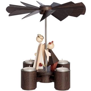Diese Teelichtpyramide wird von den Kunstgewerbe-Werkstätten Olbernhau im Erzgebirge gefertigt. Der Drehteller ist mit einer kleinen Engel- und Teufel-Figur bestückt. Angetrieben wird diese Pyramide durch vier Teelichter.- Höhe: ca. 26,0 cm